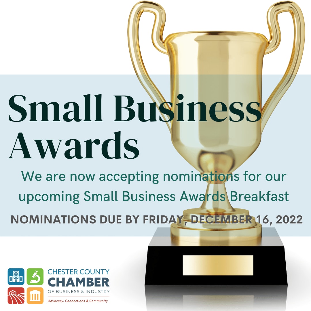 The Chester County Chamber of Business & Industry is proud to recognize the success of small business in our community at our upcoming Small Business Awards Breakfast.